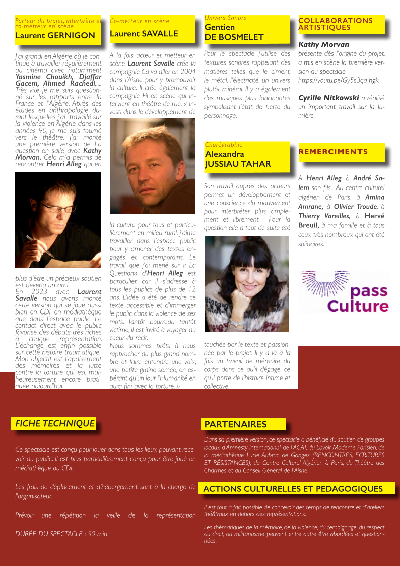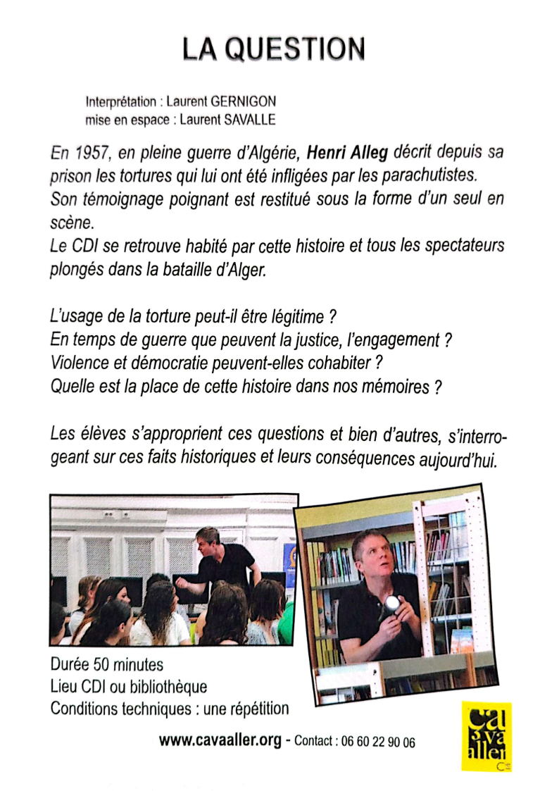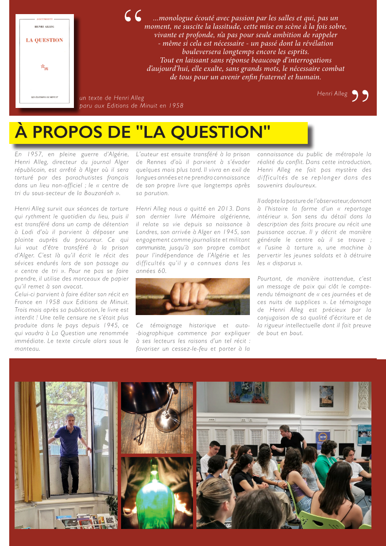 La Question - COMPAGNIE CA VA ALLER - Le témoignage d’Henri Alleg est précieux par sa qualité d’écriture et la rigueur intellectuelle dont il fait preuve de bout en bout.