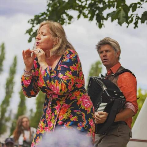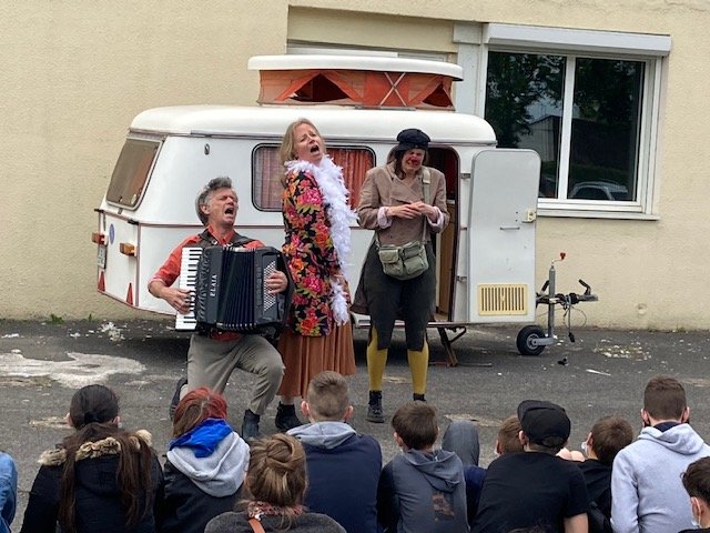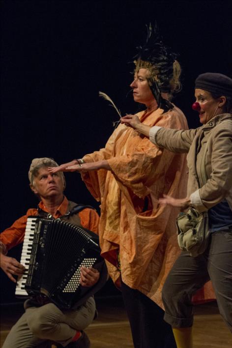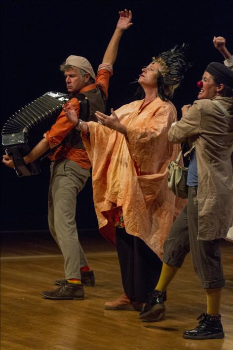 Une chanteuse, un accordéoniste et un clown.