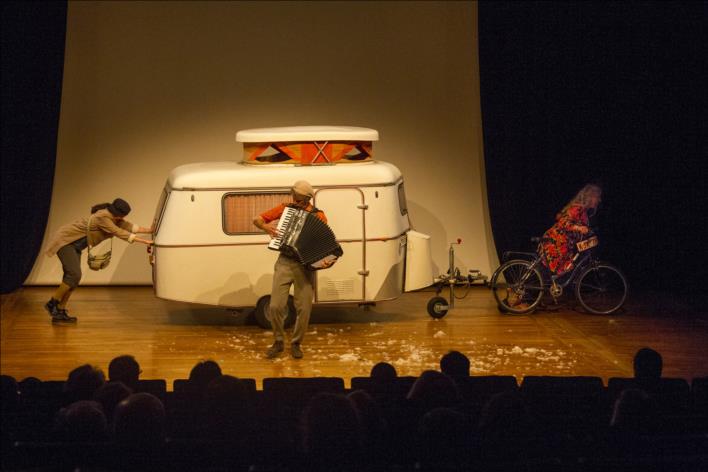 BONNES NOUVELLES - COMPAGNIE CA VA ALLER - spectacle / théâtre tout public - Une famille d’artistes : la famille Banzoni : Une chanteuse, un accordéoniste et un clown. Leur métier : rapporter les bonnes nouvelles du monde aux habitants des villes ou villages.